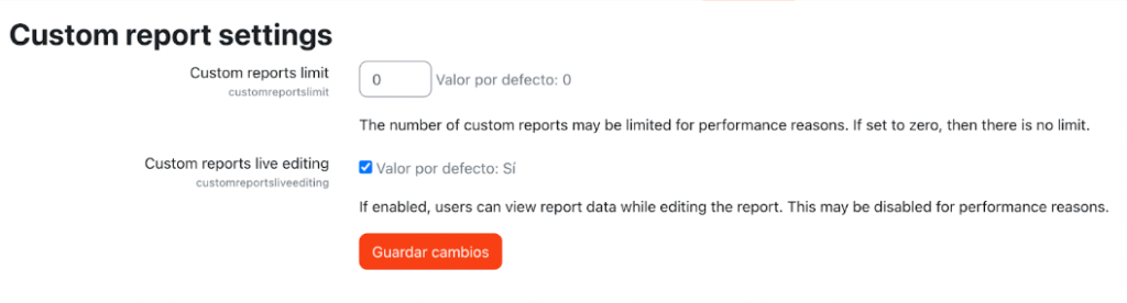 Se han creado nuevos ajustes para los reportes personalizados, donde se pueden limitar el número de informes y evitar que los usuarios vean los datos en vivo mientras se está editando el informe. Además, se incluyen nuevas fuentes de origen de los informes.