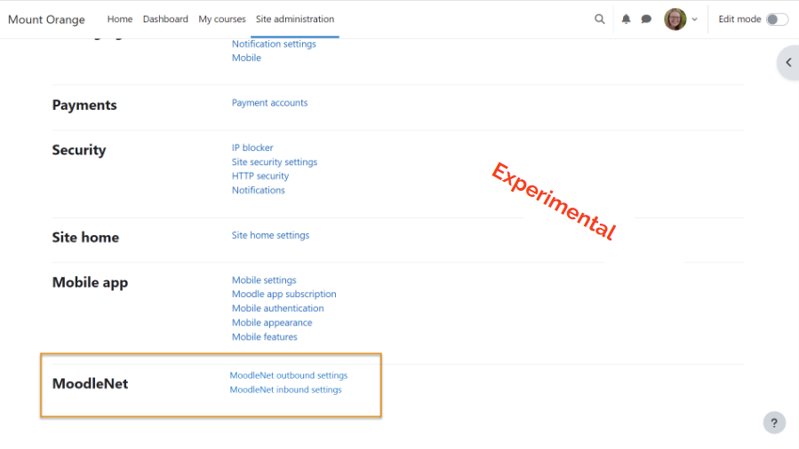 De manera experimental, en la nova versió es pot exportar contingut a MoodleNet. MoodleNet és la plataforma oberta de Moodle de xarxes socials per a educadors. Se centra en el desenvolupament professional i l’intercanvi de recursos amb llicència oberta, i es basa en un model federat.